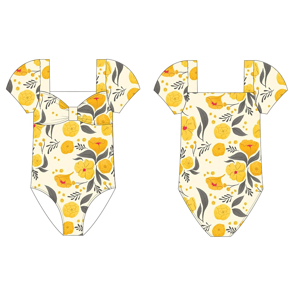 OEKO TEX Kids Uv Swim Suit Wholesale Toddler Swimwear Beachwear Child One Piece Swimsuit with Bows