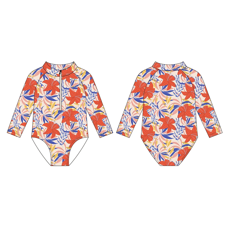 OEKO TEX Repreve Kids Swimwear Rash Guard UPF 50 One Piece Bathing Suit UV protection Long Sleeve Swimsuits for Girls