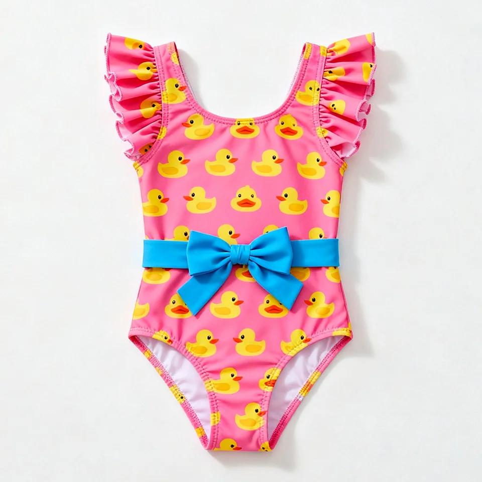 OEKO TEX Ruffle Toddler Girls Swimsuit Manufacturer Child Beach Wear Kids One Piece Swimwear with Bows