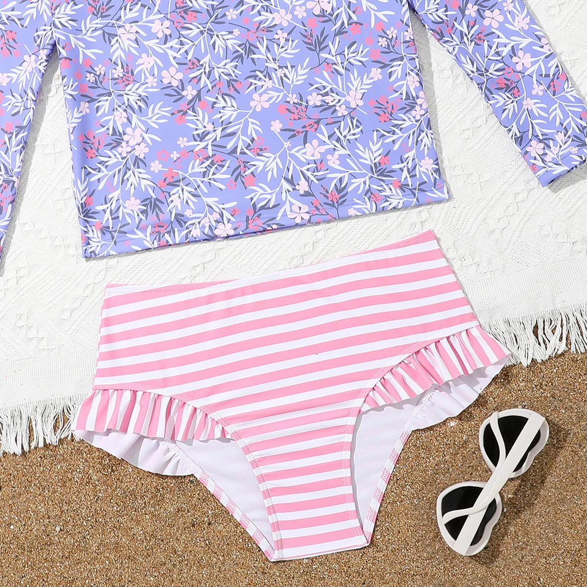 OEKO TEX Toddler Rash Guard Sets Bikini Bottom Swimwear Sun Protection Kids Bathing Suits Girls Long Sleeve UV Swimsuit