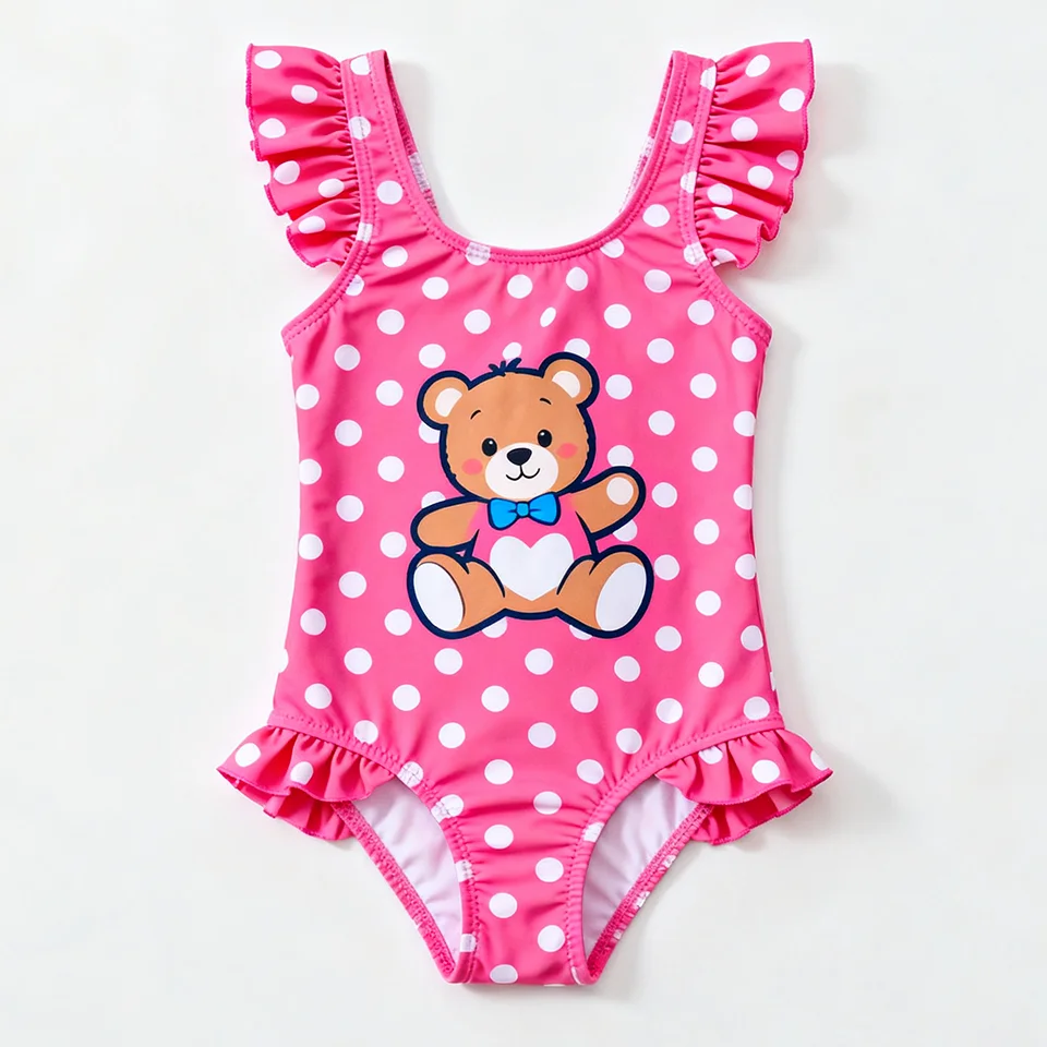 OEKO TEX Wholesale Summer Custom Kids Cute Girl Swimwear Beachwear Ruffle Bathing One Piece Swimsuits Print UV Protection