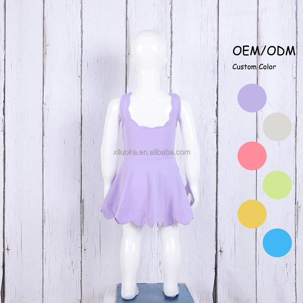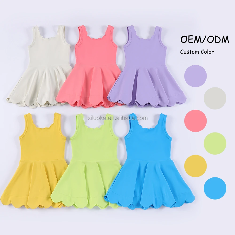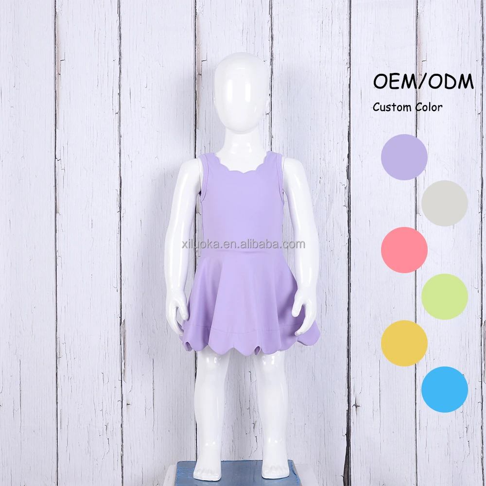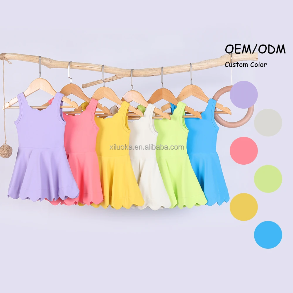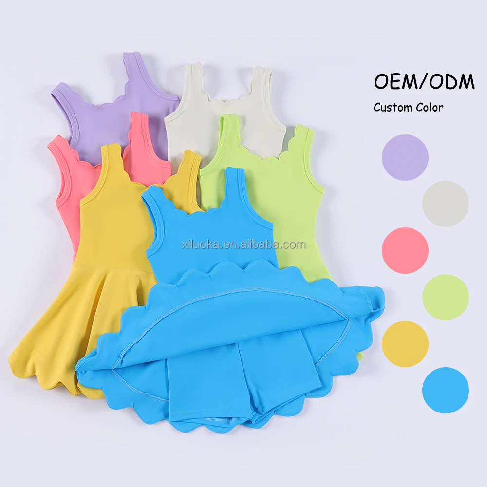 Quick Dry Toddler Girls Yoga Scallop Dress With Inner Shorts Girls One Piece Nylon Spandex Tennis Running Golf Active Wear