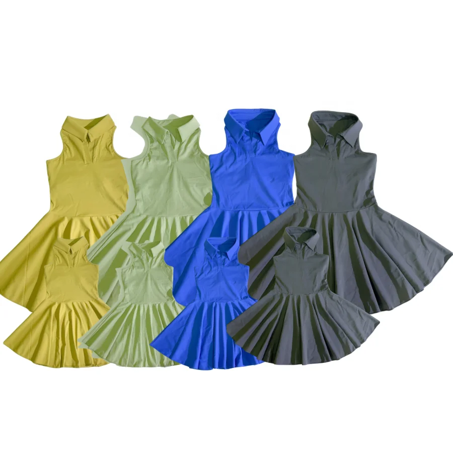 Tennis Wear Sports Dress Manufacturer Custom Clothing Kids Custom Solid One Piece tank Dress for Girls