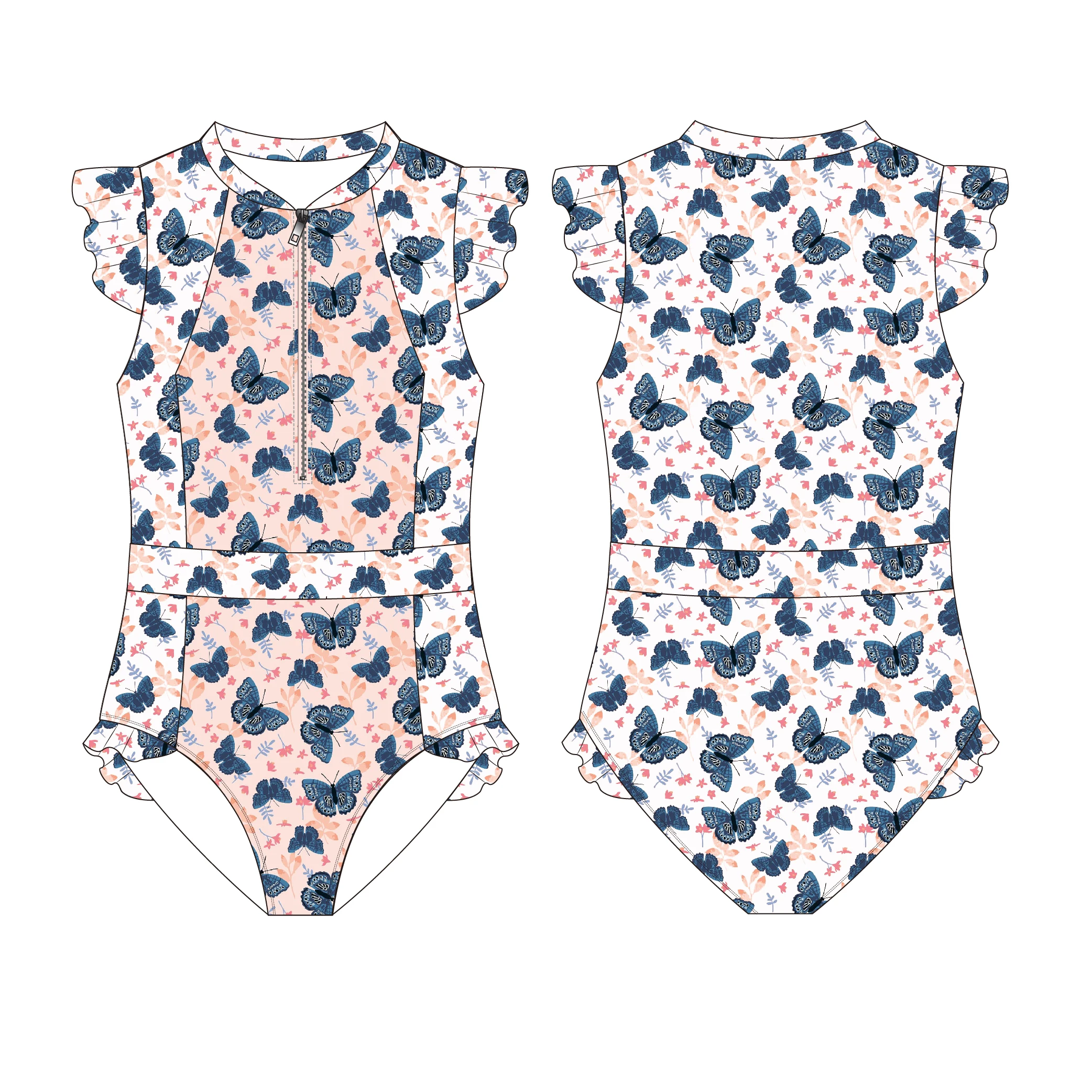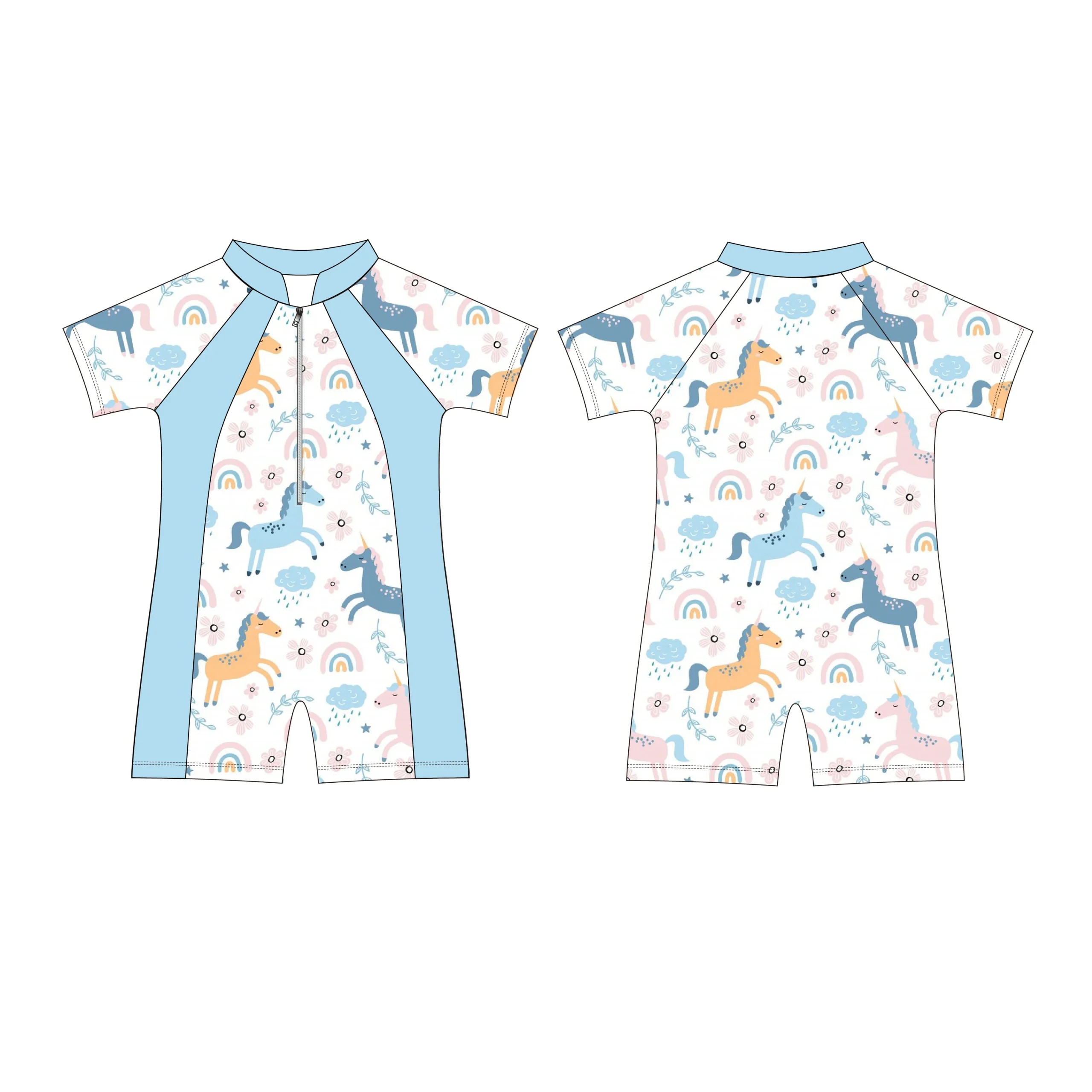 UPF 50+ Toddler and Baby Girls Long-Sleeve Rashguard and Trunk Swimsuit Sets Customized Eco-Friendly Recyclable Fabric Swimwear