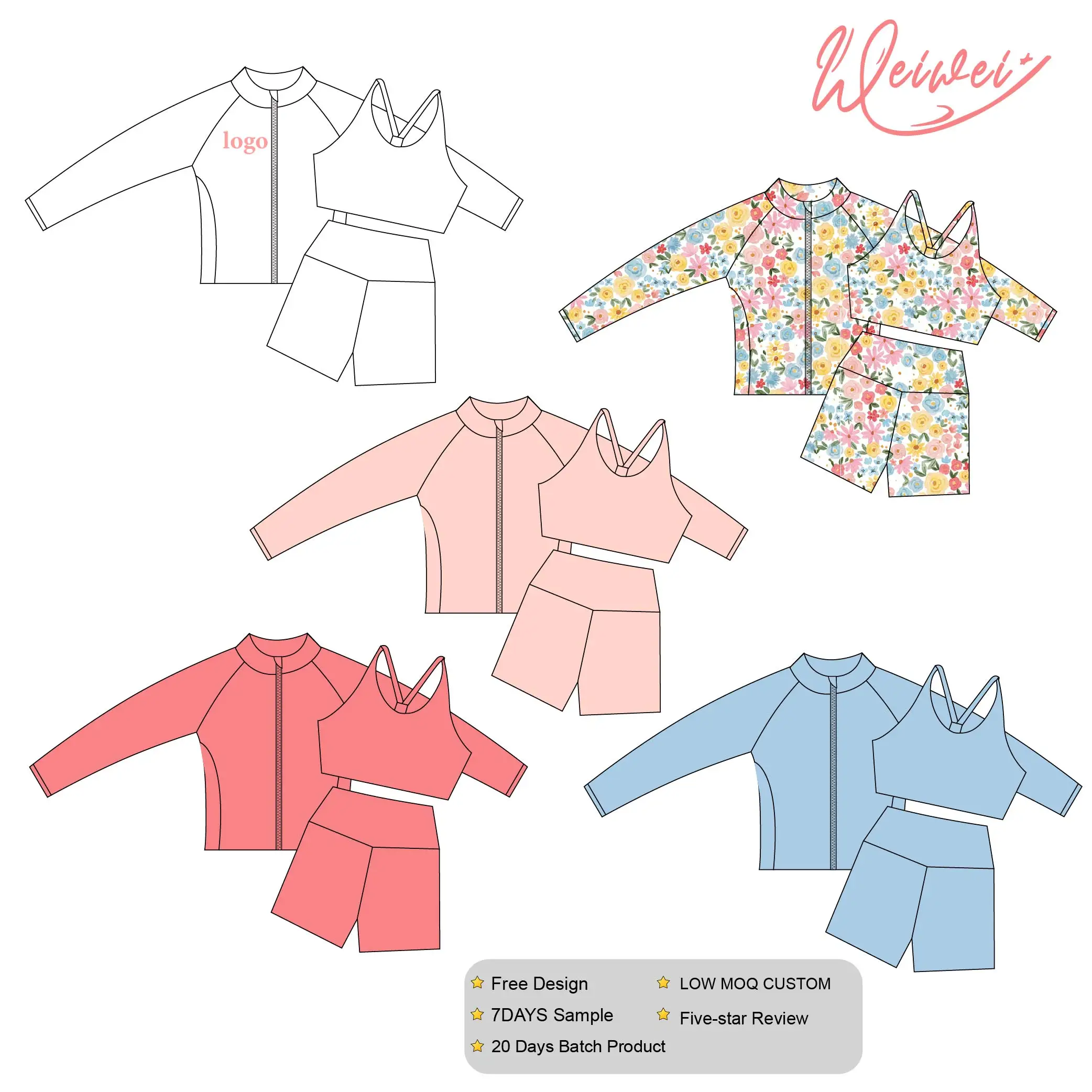WEIWEI Custom Printed Girls Yoga Set Long Sleeve & Pants Kids Activewear Sportswear with Your Logo Design for Children Fitness