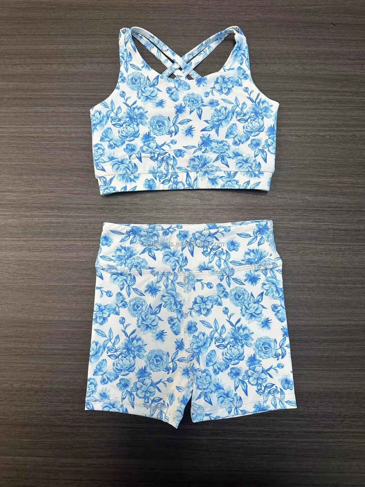 Wholesale Child High Waist Gym Clothes Sets Kids Girl Fitness Yoga Workout Leggings Sports Suits