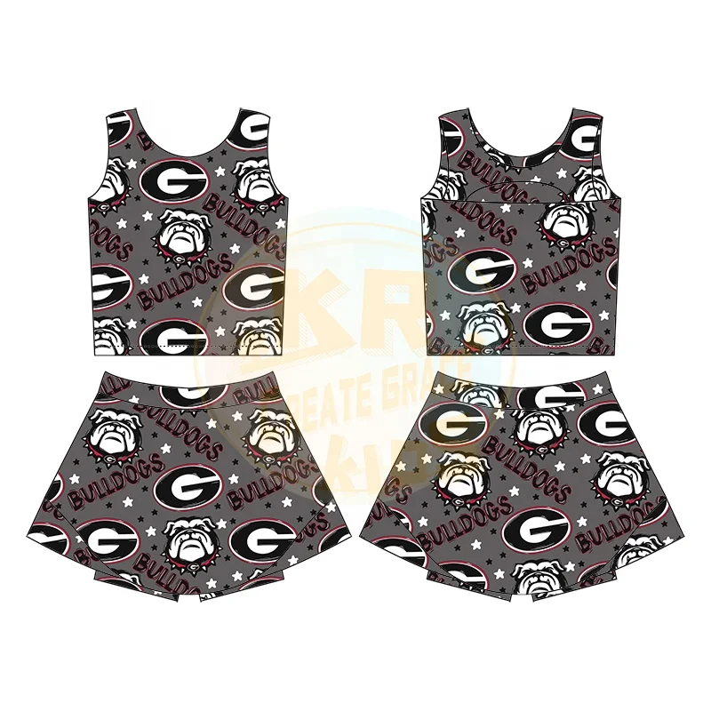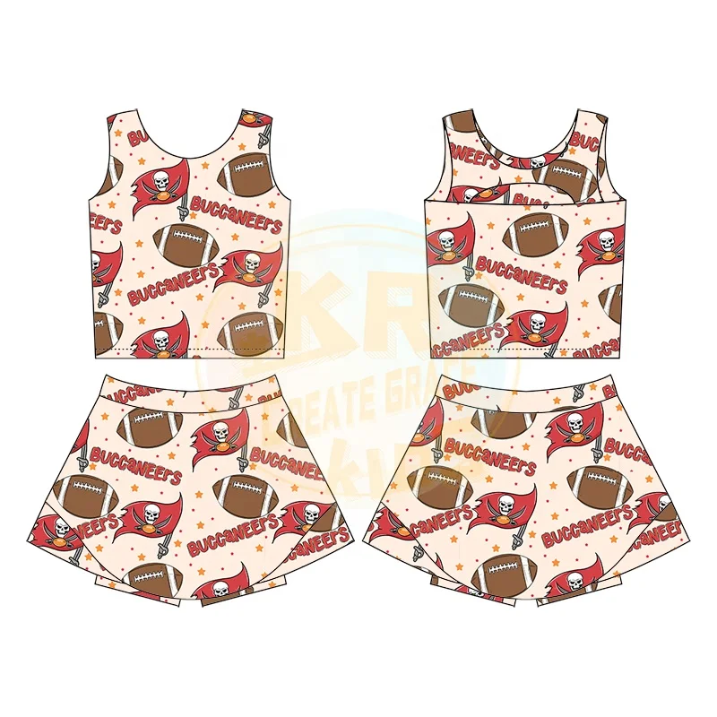 Wholesale Custom Team Print Tennis Skirts Girls Clothing Sets Fashion Kids Sport Wear Children’s Gym Yoga Wear