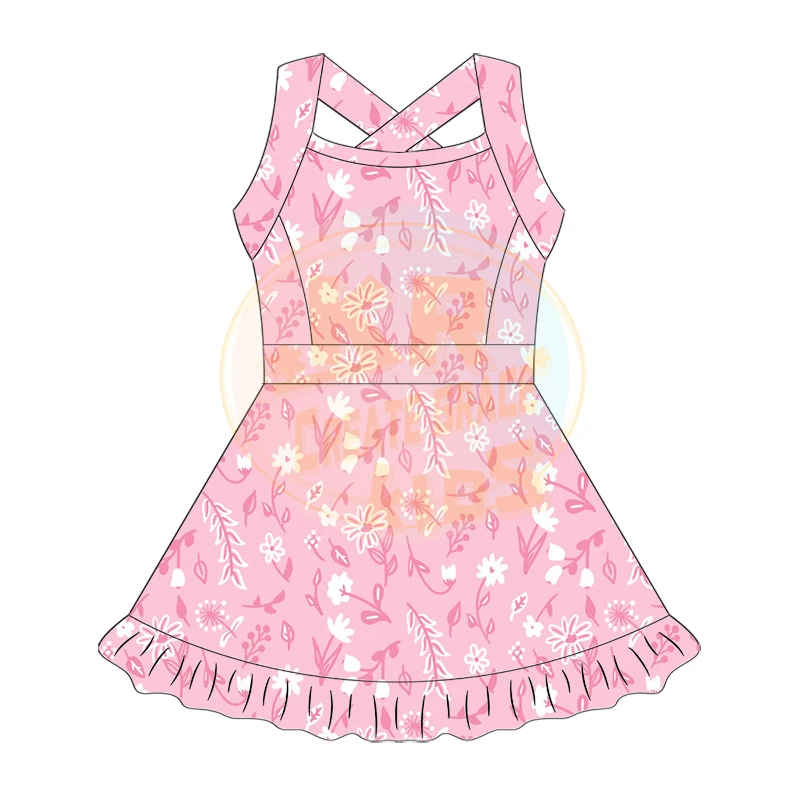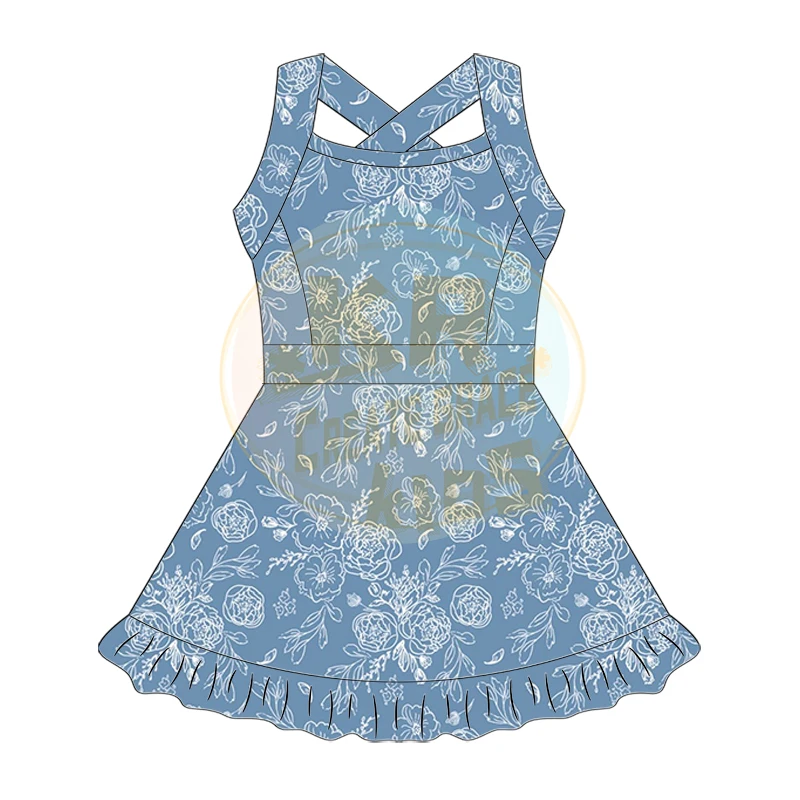Wholesale Kerui Girls’ Kids Yoga Sports Set Breathable Quick-Dry Nylon Spandex Fitness Skirt Workout Dress All Season Baby Blue