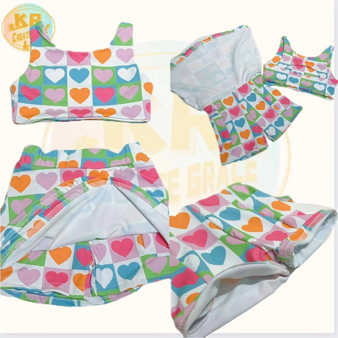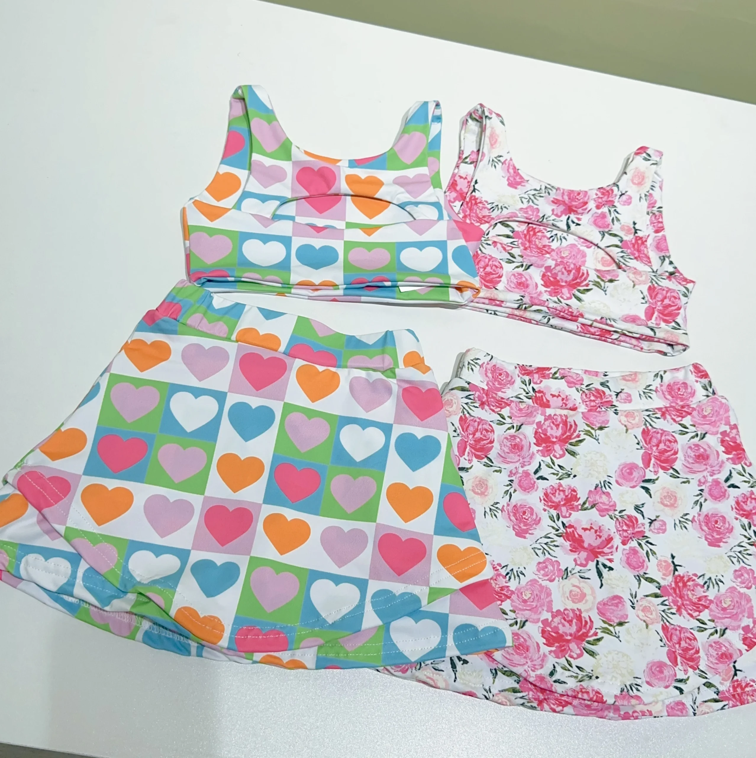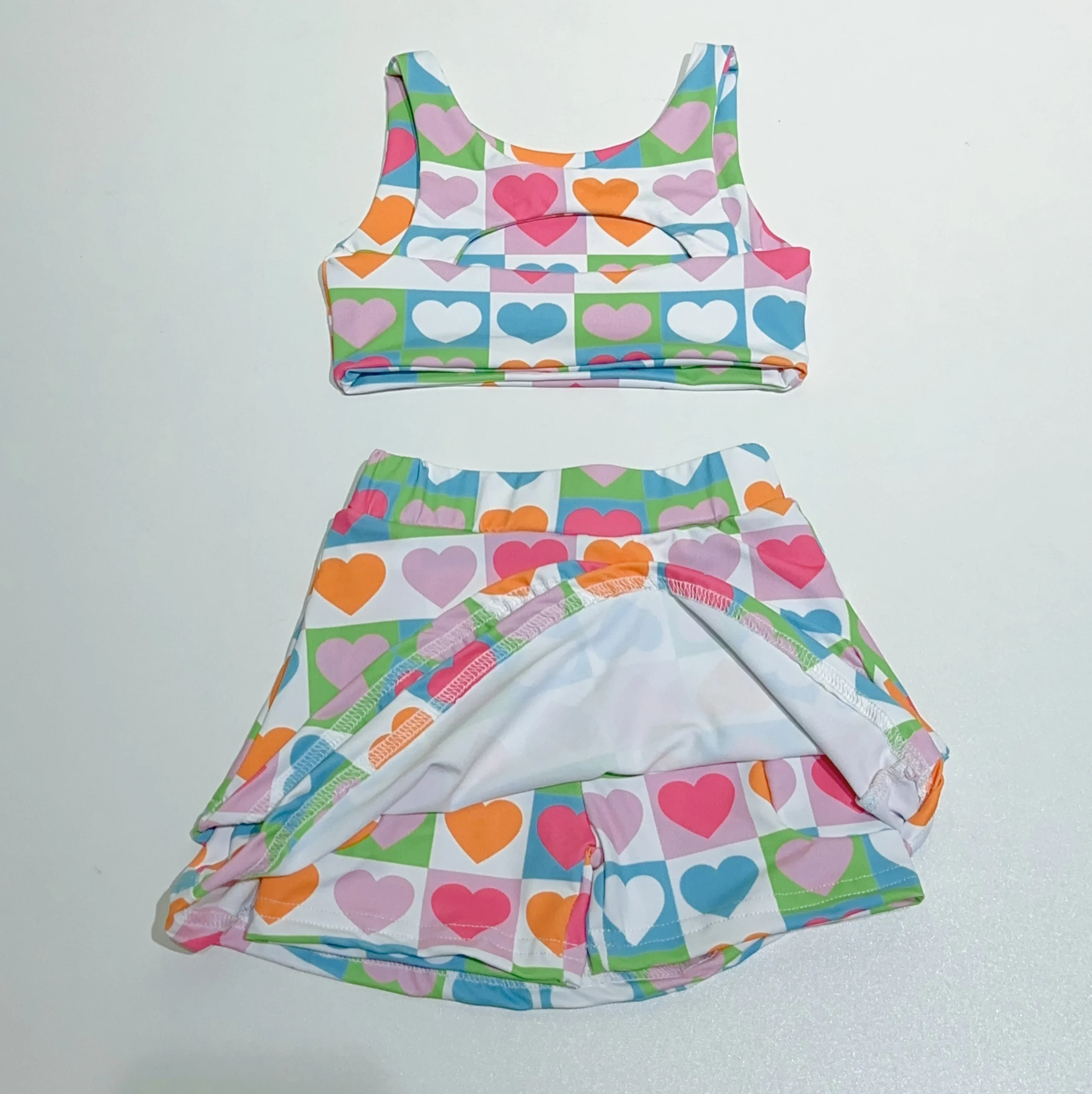 Wholesale Popular Above Knee Knit Yoga Skirts for Girls Private Label Short Nylon Spandex Baby Girls Sports Sets
