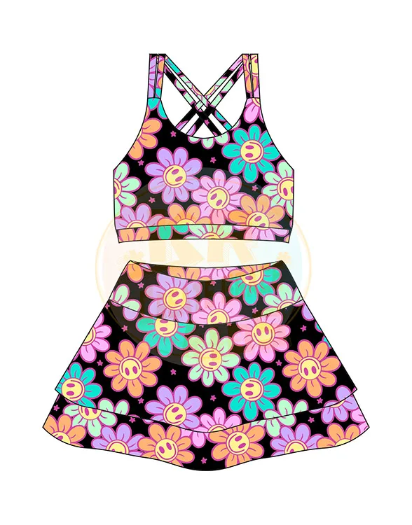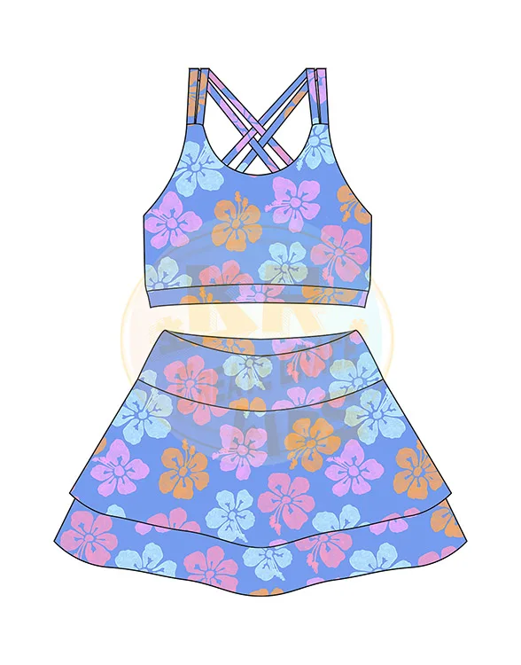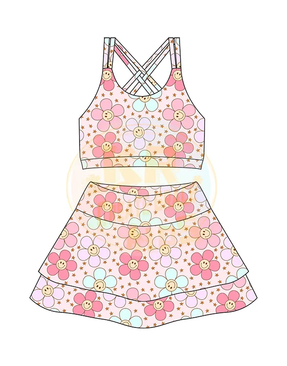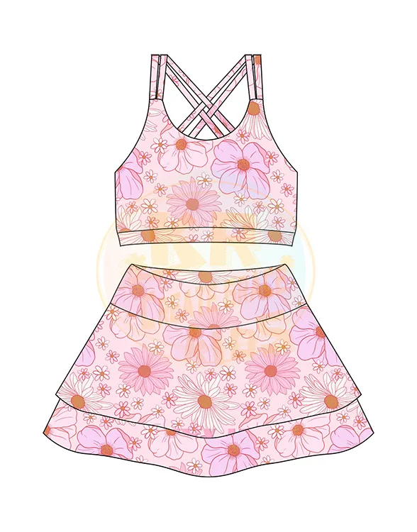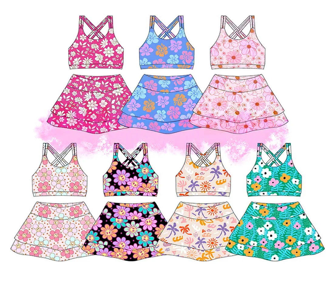 Wholesale Workout Vest Skirts Sets Matching Yoga Skirts 2 Piece Suit Yoga Sports Skirts for Kids