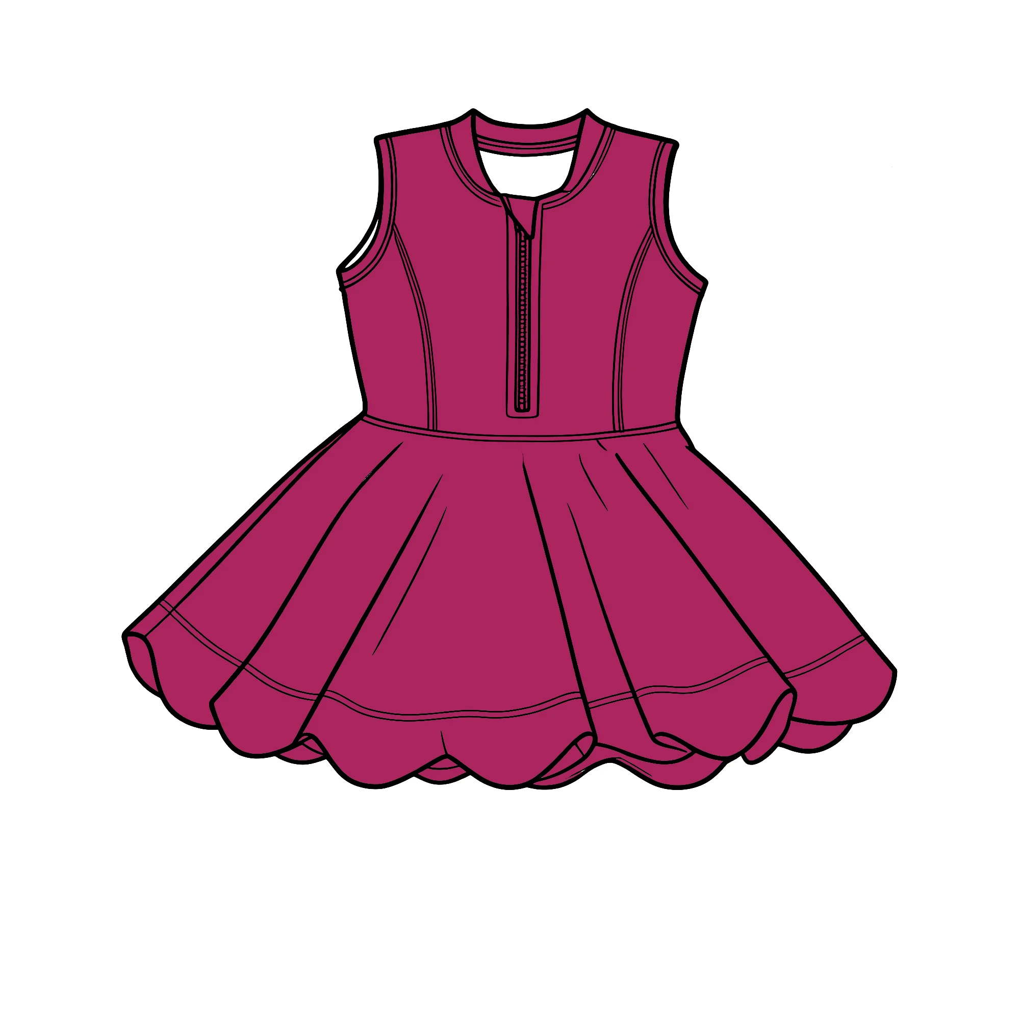 Zhengpai Little Girls Sports Yoga Wear Solid Color Girls Clothes Sleeveless Zip Dress Wholesale Sister Kids Clothing